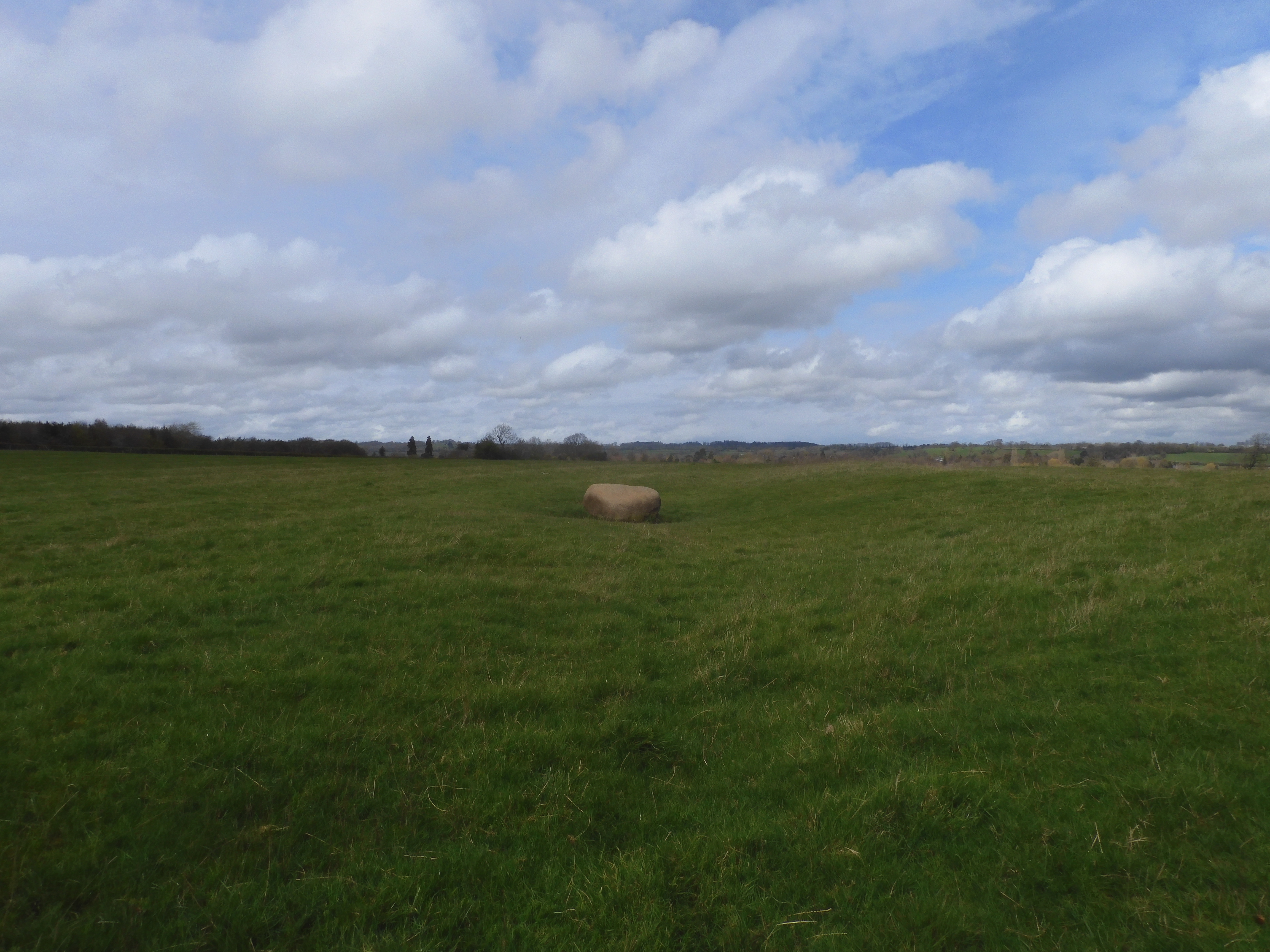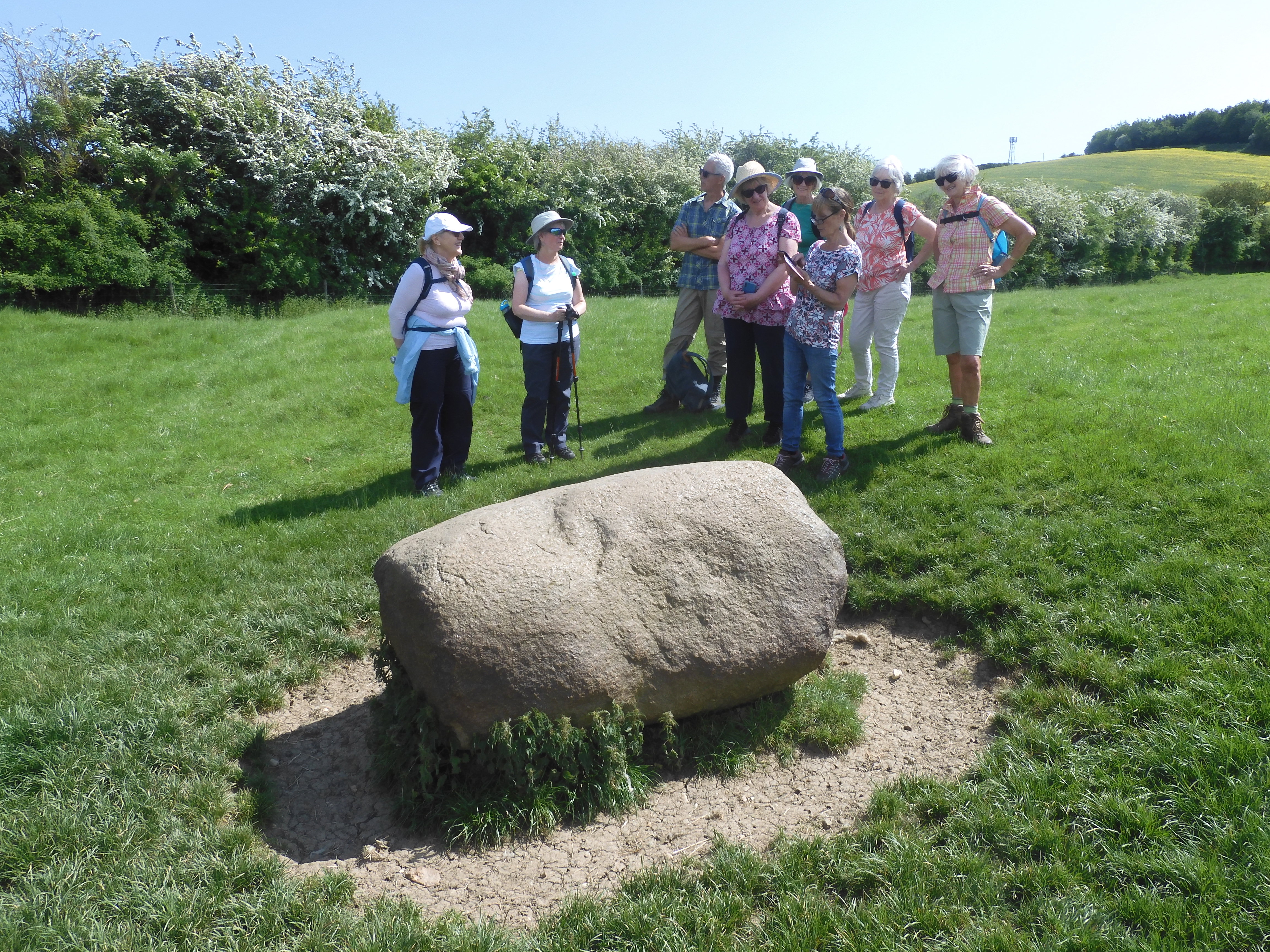 Back to our Wednesday afternoon ramble, the destination of which held fascination for me as we were going on a quest to find the ‘Judith Stone’, located in a field on the outskirts of Market Harborough. It was also mentioned in the Domesday book of 1086 which was the first and most important record of England by King William I, the French conqueror of our country, after the Battle of Hastings in 1066 in which he defeated our King Harold. He was also known as the William the Bastard king because of his doubtful family lineage, rather than the fact that he had invaded and was dividing up our country, although that may also have been true. It is thought that the stone took its name from the Countess Judith, niece of William. She is recorded in the Domesday Book as holding land in the area, so perhaps the stone marked a boundary of some kind. It is an igneous rock and described as being an ‘erratic glacial boulder’. But certainly, rather random and remarkable by the fact that it is unmarked and sits in the middle of a field and one has to know about it and how to find it, otherwise it would remain unnoticed.